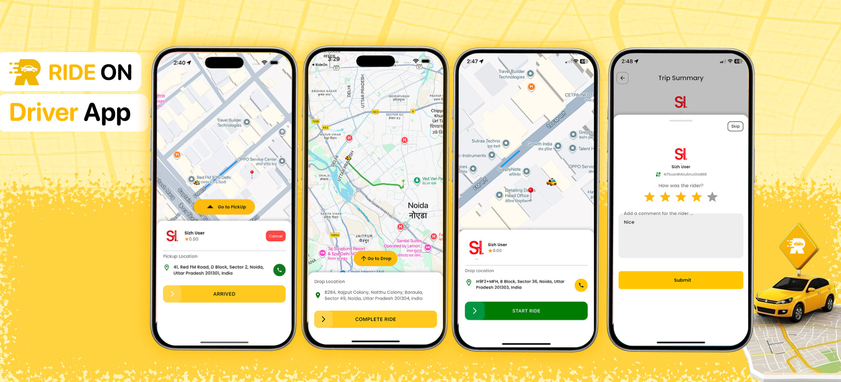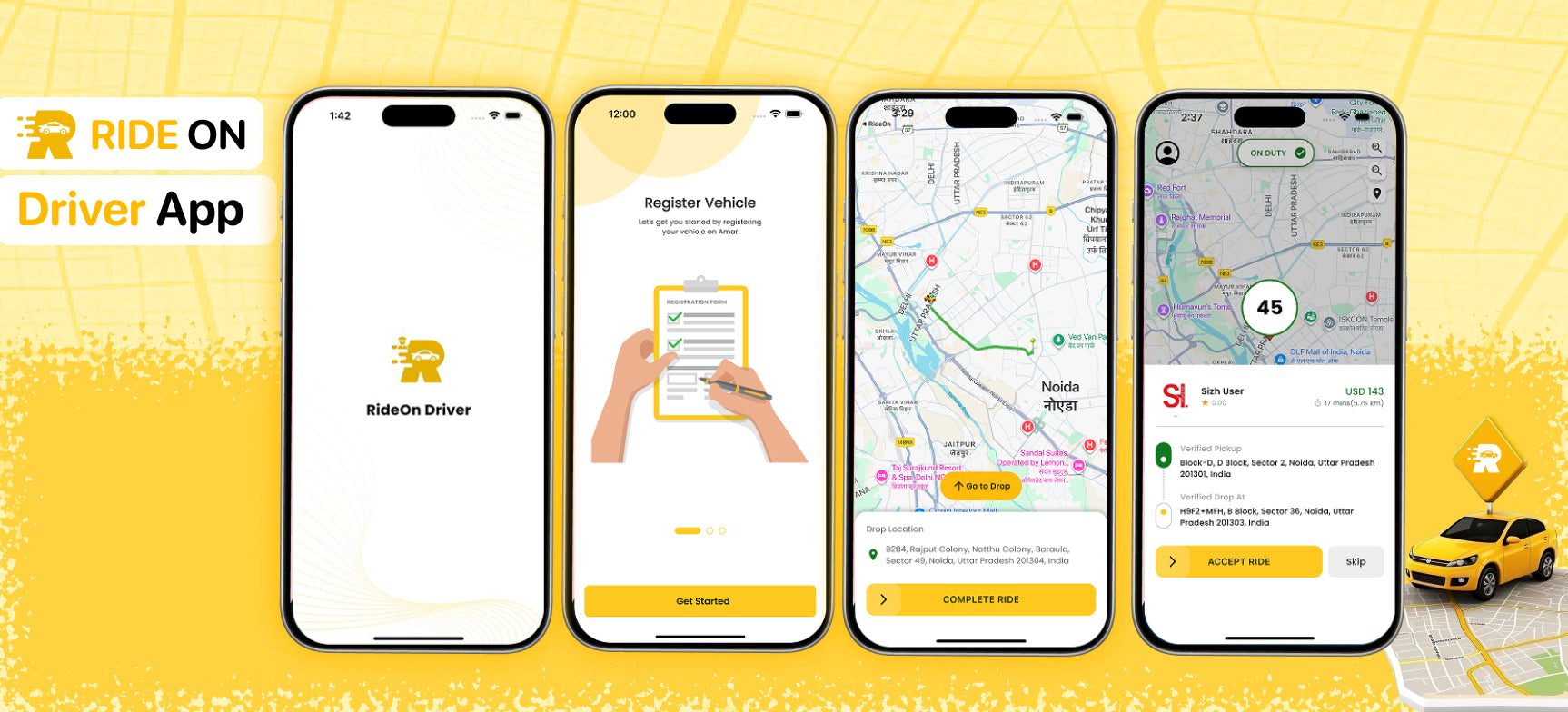 RideOn Taxi is a reliable and easy-to-use on-demand taxi booking platform designed for businesses, entrepreneurs, and startups who want to launch a professional taxi service. Built with Flutter for the Rider and Driver apps and Laravel for the backend, RideOn Taxi streamlines the complete taxi lifecycle—from booking to payment—delivering a seamless experience for riders, drivers, and administrators.